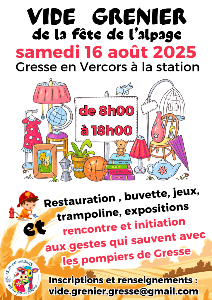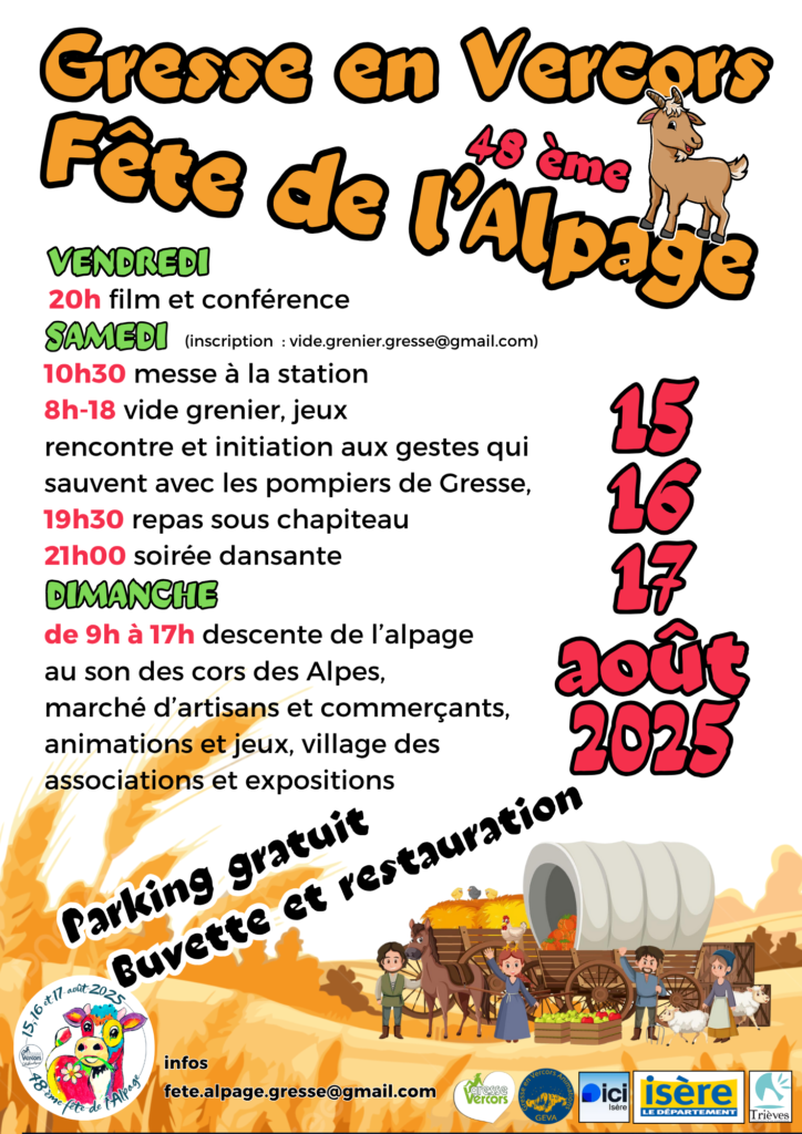 Samedi 16 août, rendez vous pour le vide-greniers, puis assister à la traditionnelle messe sur l’Alpage du Serpaton ! Et pour finir la journée, partez direction la station dans une ambiance festive, pour un repas-concert !