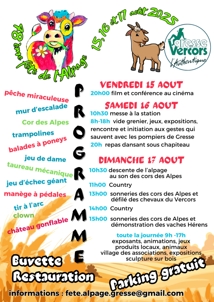 De nombreuses animations rythmeront la journée du dimanche 17 août, vous pourrez découvrir les métiers traditionnels et la vie en alpage, jeux et animations.