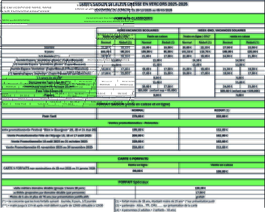 Les horaires du Domaine Skiable